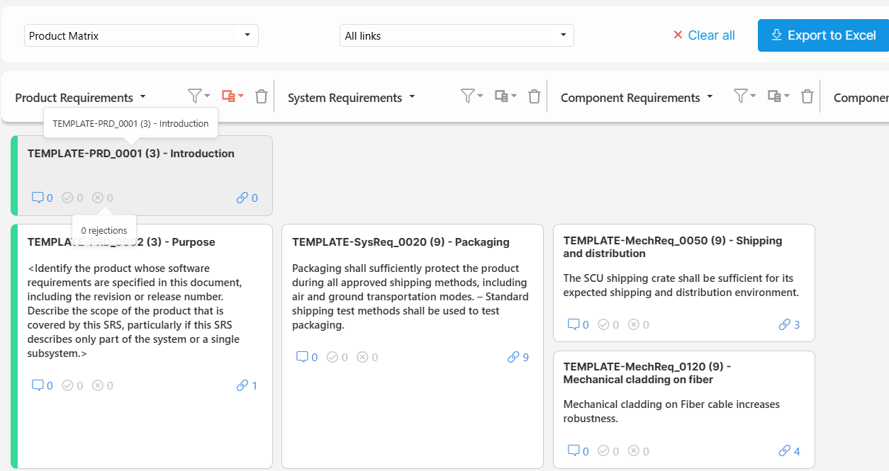 - Try adding or removing links between items and refresh the matrix to see how the traceability map changes.