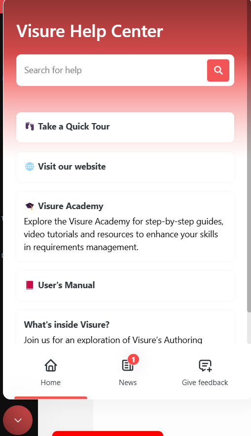 - When you open Visure for the first time, you may see a prompt for the guided tour.