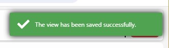 • Save view: This option will overwrite the configuration of the current view with the current filters and columns. The user will get a notification that the view has been saved.