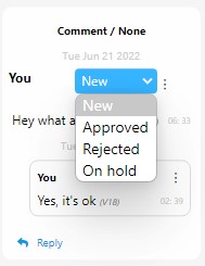 Comments display a basic approval workflow with the following states:
