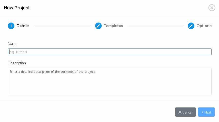 In order to create a project, click on Settings at the bottom left corner . Go to Projects and click on . This will open a wizard that will take you through the four necessary steps required to create a new project:
