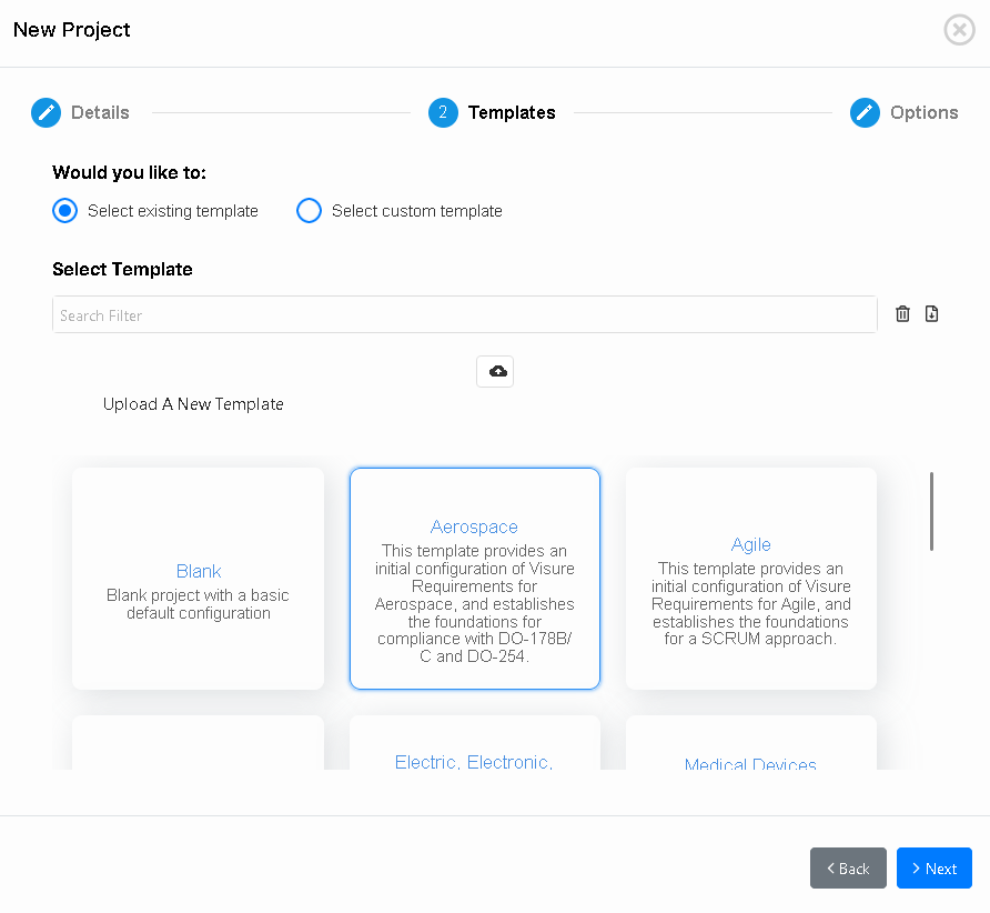 In this step, you will be able to select any of the existing project templates to create your new project.