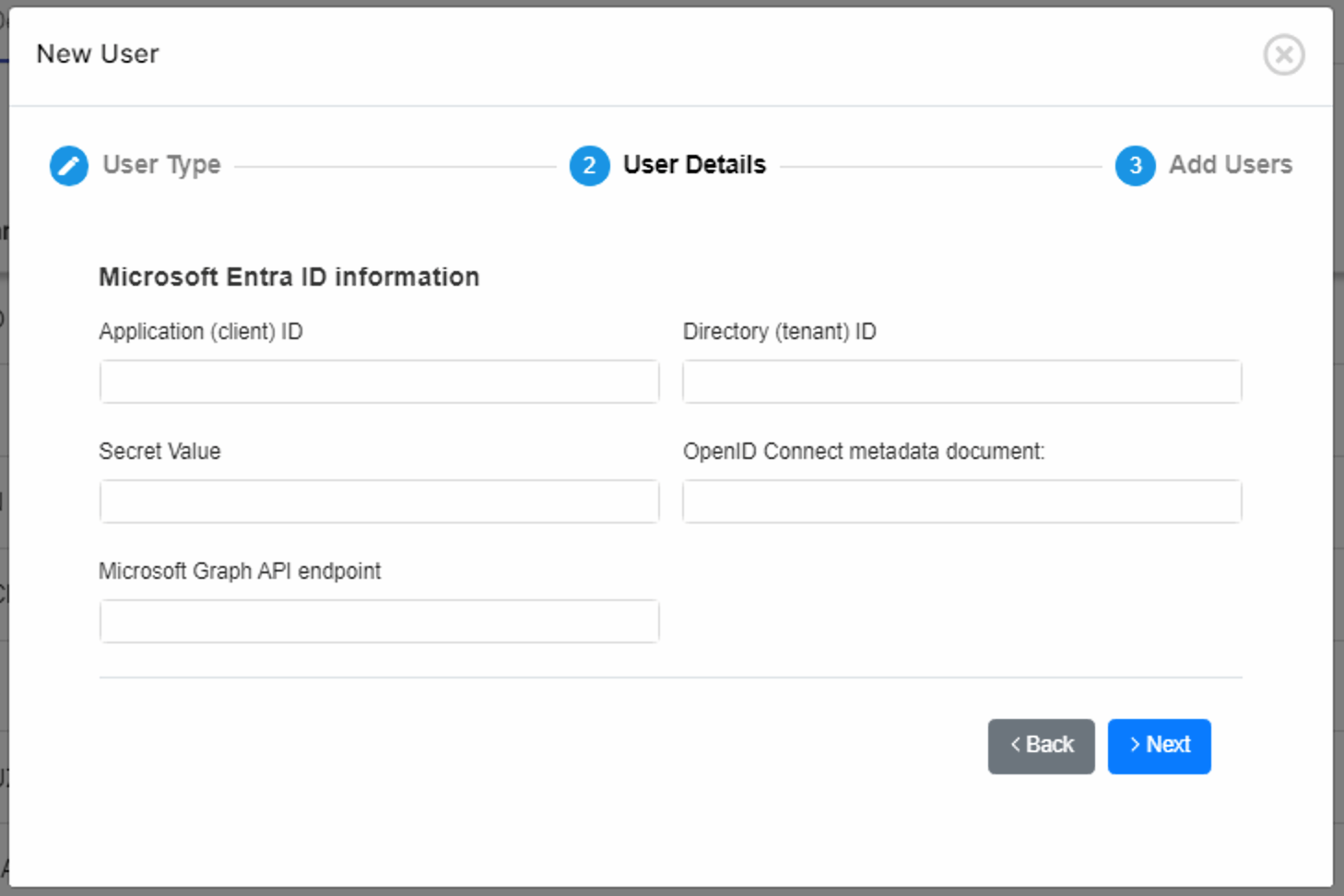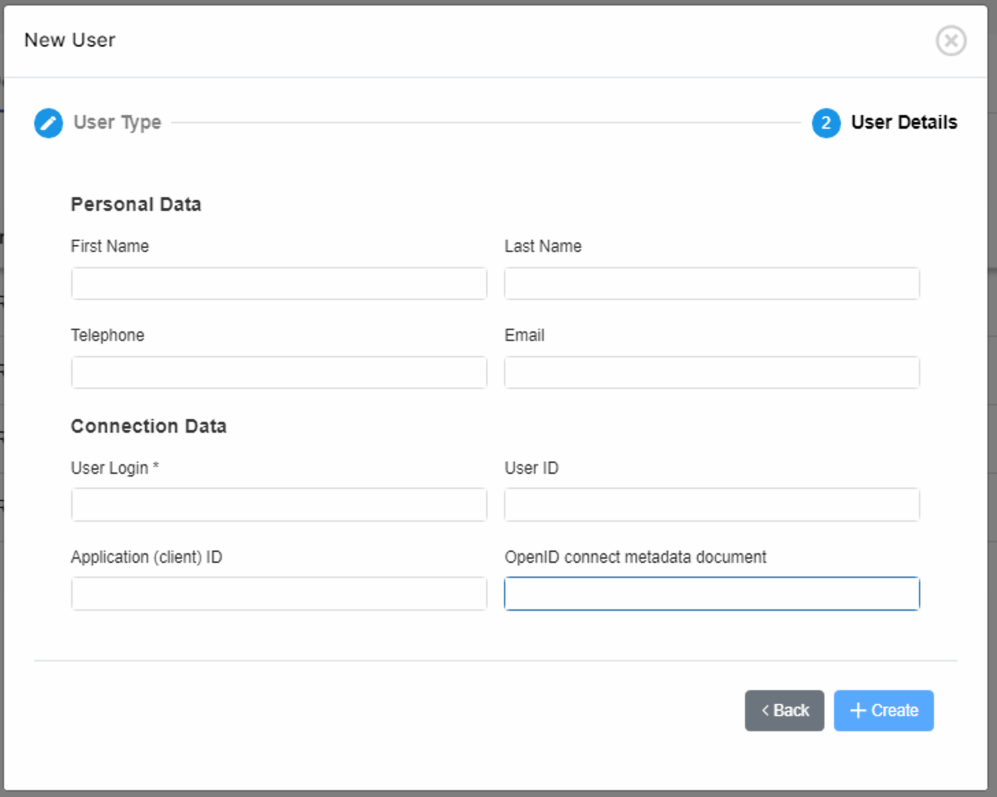 IMPORTANT NOTE: Open ID Connect Users can only be added manually one by one. It is not possible to import them from an external source.