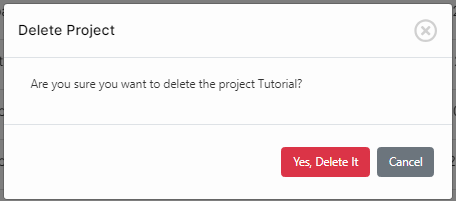 1. Click on the delete project button () of the project you would like to delete. A confirmation message will appear: