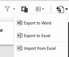 The user can export both the Document and List view to Word clicking on the export button and then selecting Export to Word.