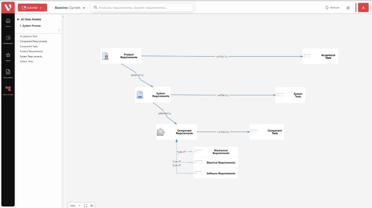 Clicking on the name of the data model in browser or on the icon, the data model will be displayed, and the specifications included in it will be listed in the Browser.