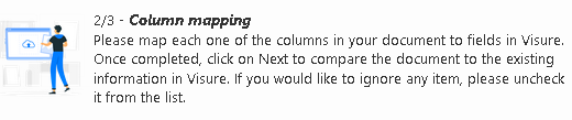 Visure will you the columns detected from your file, ensure the file is correct and proceed to step 2.