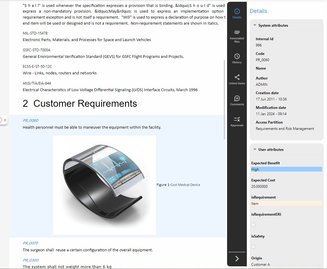 - The System attributes are Visure-defined attributes, common to all items. Some system attributes such as code, name and access partition may be modified in this tab if the item is checked out, but others such as Author, Creation and Modification date may not be modified at all.